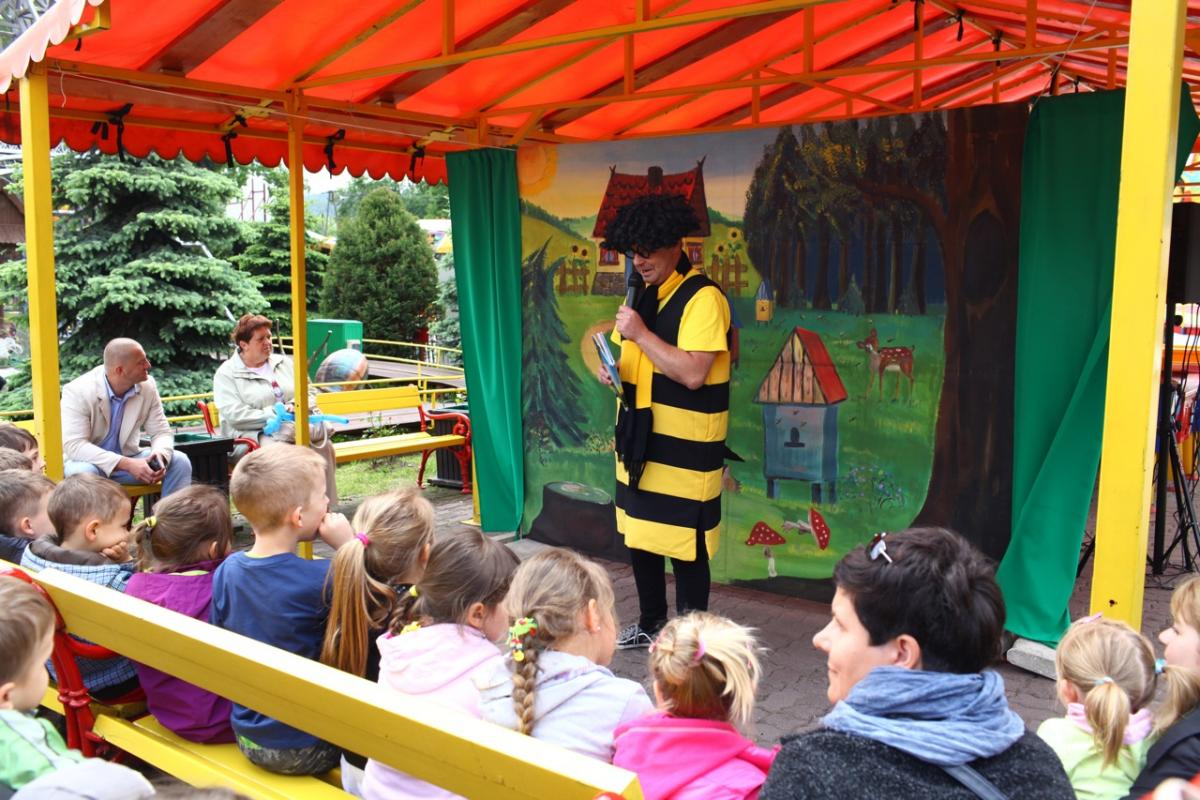Imprezę prowadził i rozbawiał dzieci Darek Galica prowadząc konkursy i losowania nagród w tym 3 rowerów. Były też wystepy dzieci i młodzieży.