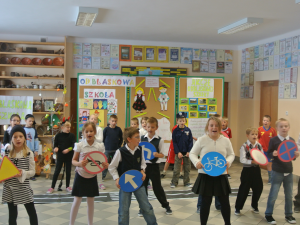 W tym dniu za oknami szalała śnieżna zawierucha. Mimo to w naszej szkole było barwnie, gwarnie i wesoło. Za sprawą starszych klas znaleźliśmy się w ulicznej scenerii pełnej blasków i odblasków. Z kolei mali aktorzy rozbawili nas swymi żywiołowymi przedstawieniami. Rezolutna Zeberka z ,,Ulicznej gry” nauczyła nie tylko nierozważnego Kubę przechodzenia przez jezdnię, ale również naszych przedszkolaków. Wszystkich zachwyciła kolorowa kurka, która przez nieroztropność straciła swe piórka. Nauczyła jednak widzów, by być mądrym i roztropnym w ruchu ulicznym.