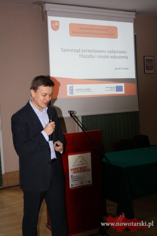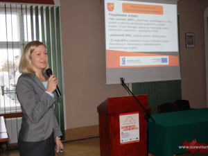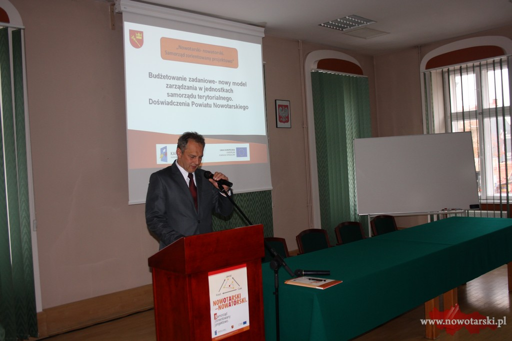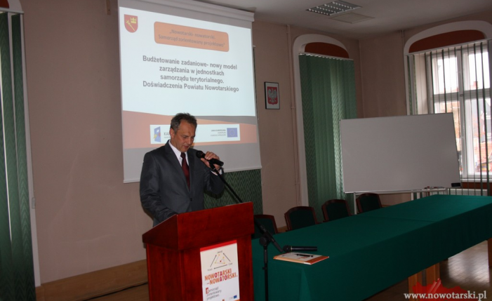Kolejno w swoich prezentacjach pracownicy Starostwa Powiatowego przedstawili, w jaki sposób udział w projekcie przez jednostkę samorządu terytorialnego, przyczynił się do zmian organizacyjnych urzędu, do inwentaryzacji zadań realizowanych przez powiat tzw. procesów, do opracowania karty usług publicznych świadczonych przez Starostwo. Największe zmiany realizacja projektu „Nowotarski – nowatorski” wywołała w podejściu do planowania i monitoringu budżetu Starostwa, w którym obecnie podczas planowania każdego zadania należy wskazać mierzalne rezultaty jego realizacji, o czym poinformowała zebranych w swojej prezentacji p.t. „Planowanie i monitoring budżetu w orientacji zadaniowej” Skarbnik Powiatu Katarzyna Machaj.