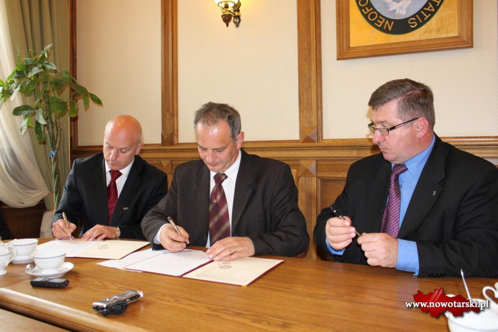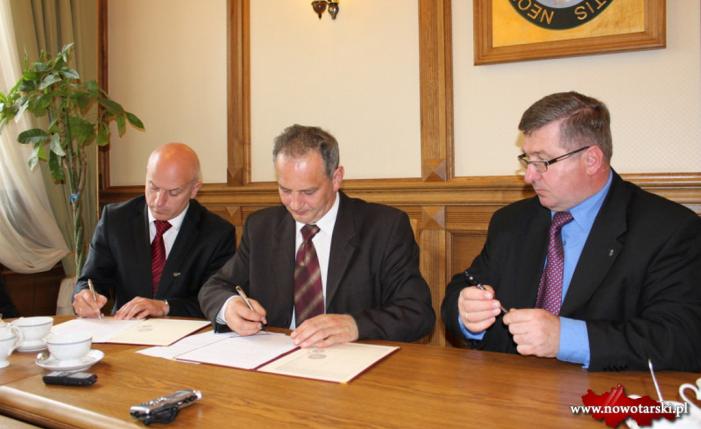 Starosta Nowotarski Krzysztof Faber, wicestarosta Maciej Jachymiak i burmistrz Nowego Targu Marek Fryźlewicz podpisali umowę dotyczącą wspólnej realizacji inwestycji pn. „Przebudowa ulicy Waksmundzkiej w Nowym Targu”. Powiat i miasto podzielą się kosztami przebudowy drogi.