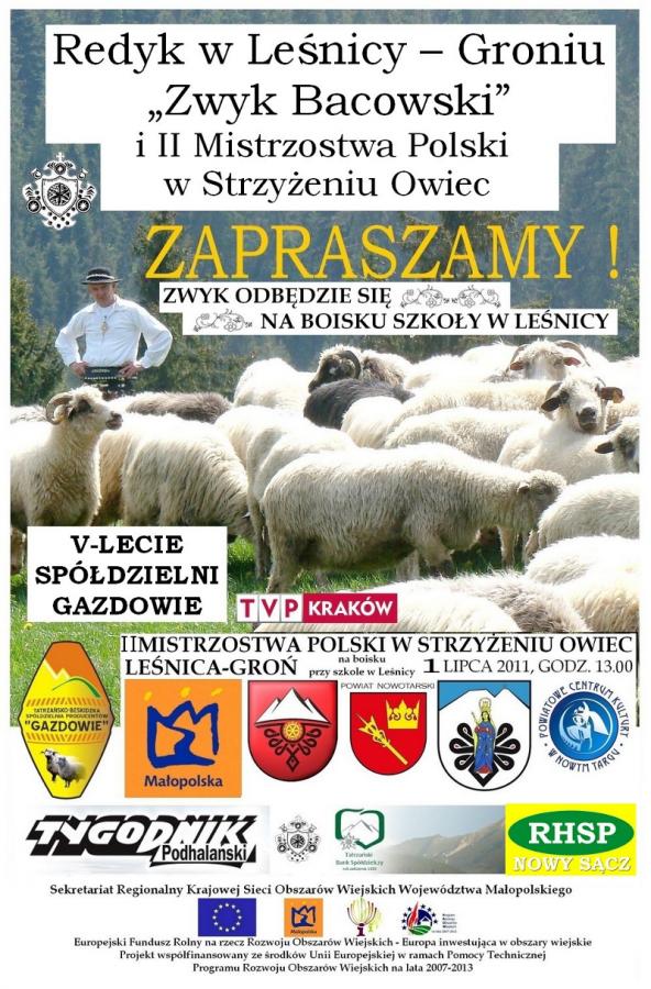 1 lipca 2012r. na boisku szkoły w Leśnicy odbędzie się Zwyk Bacowski i II Mistrzostwa Polski w strzyżeniu owiec.
