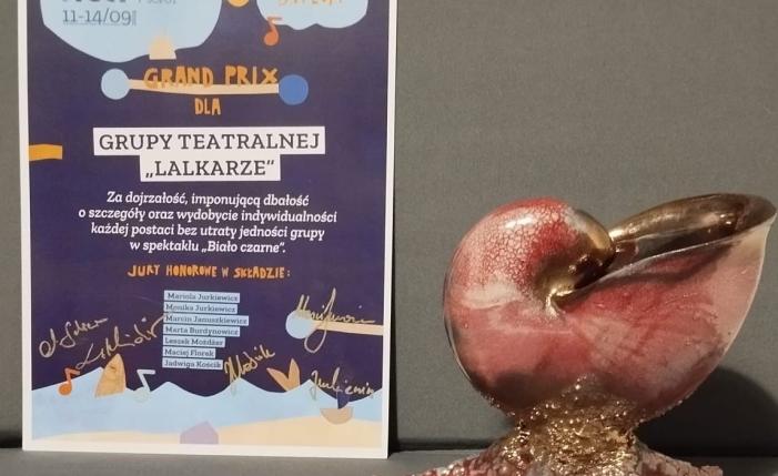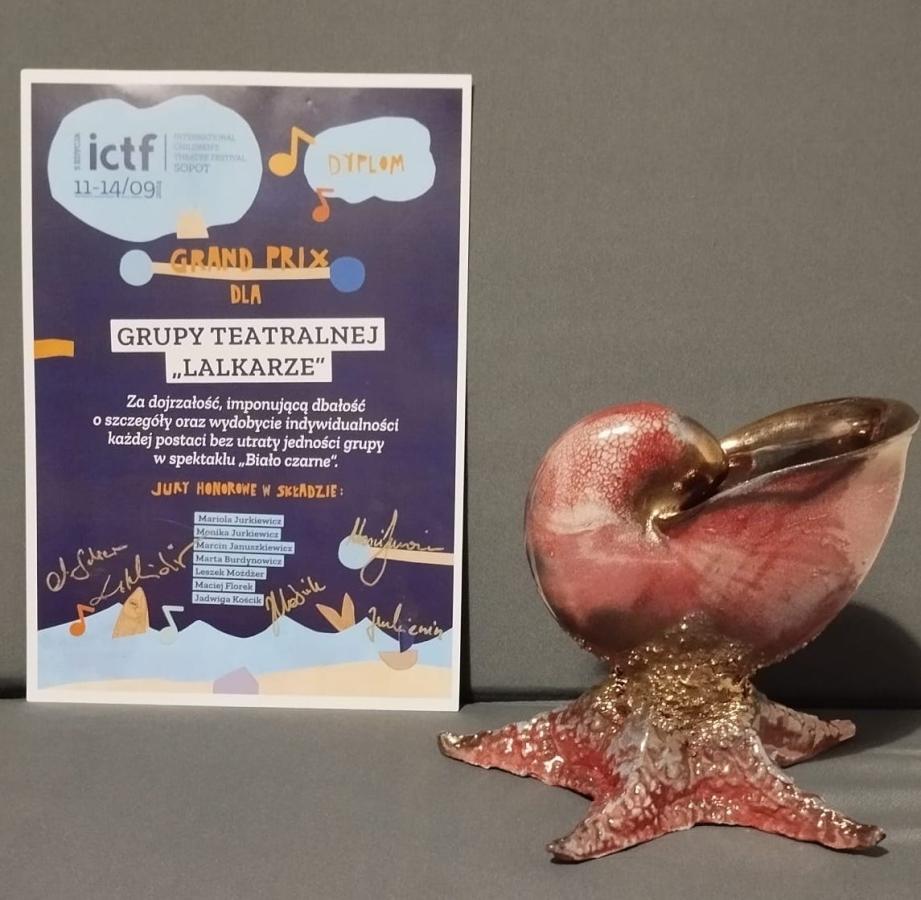 W dniach 11-14 września Grupa teatralna „Lalkarze” uczestniczyła w Międzynarodowym Festiwalu Teatrów Dziecięcych i Młodzieżowych ICTF SOPOT 2024. „Lalkarze” wystąpili ze spektaklem „I biało na czarnym”, który został doceniony przez jury i otrzymał NAGRODĘ GRAND PRIX, a Anna i Jacek Krakowiakowie - NAGRODĘ ZA REŻYSERIĘ.