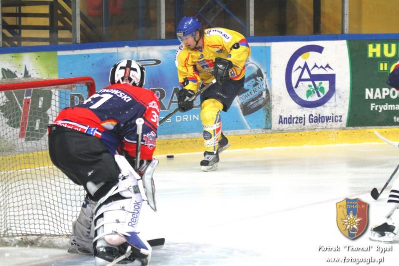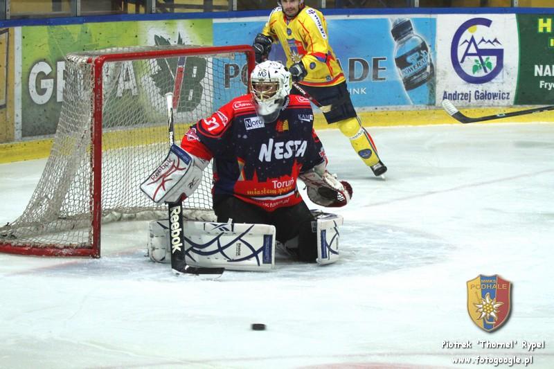 Pierwszej przewagi nie udało się wykorzystać, jednak gdy na ławkę kar powędrował kolejny z graczy Torunia, napór Szarotek został udokumentowany bramką - Piotr Ziętara dobił strzał Czuy’a. W 9 minucie Podhale miało dwie bardzo groźne sytuacje podbramkowe, których nie udało się zamienić na bramki, a na trybunach zamiast okrzyków radości, słychać było jęk zawodu. W 11 minucie "Różak" objechał świątynię toruńskiego bramkarza i krążek co prawda wpadł do bramki, jednak sędzia dopatrzył się spalonego w polu bramkowym i nie uznał gola. W 18 minucie przed bardzo dobrą sytuacją strzelecką stanął Filip Wielkiewicz, jednak skuteczną interwencją popisał się bramkarz gości.