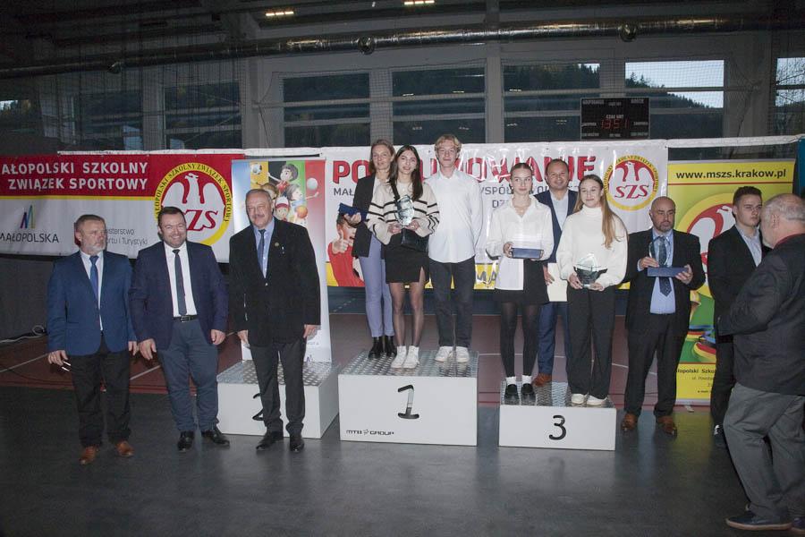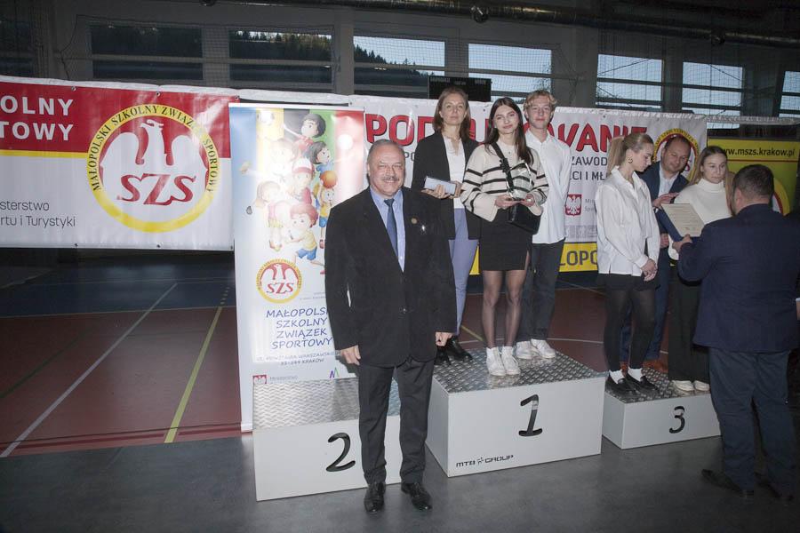 Statuetkę dla najlepszej szkoły w Małopolsce odbierali: Pani Barbara Wcisło oraz Inga Tworek i Karol Zahora – przedstawiciele lekkoatletów, dyscypliny sportu, która przysporzyła szkole najwięcej punktów. Współautorami sukcesu są nauczyciele: Ewa Kolasa, Joanna Jethon – Sułkowska, Barbara Wcisło, Szymon Pohrebny, Wojciech Tischner, Karol Majewski. W klasyfikacji licealiady uwzględniono 114 szkół.
