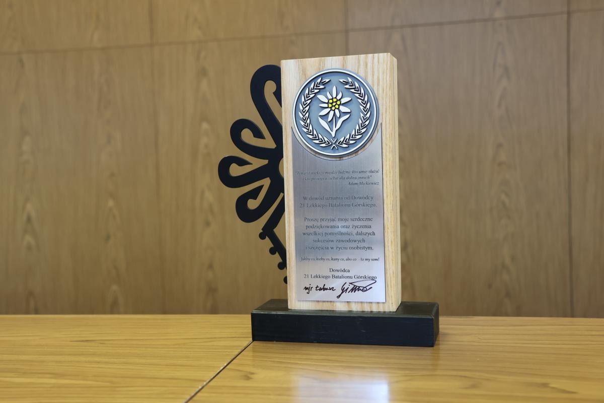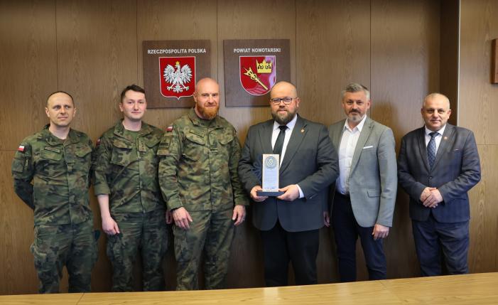 Podczas spotkania przedstawiciele Zarządu Powiatu Nowotarskiego otrzymali z rąk dowódcy pamiątkową statuetkę, przekazaną w dowód uznania za dotychczasową współpracę i zaangażowanie w działania wspierające Siły Zbrojne RP.