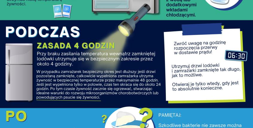 Ulotka informacyjna dotycząca bezpieczeństwa żywności w sytuacji przerwy w dostawie energii elektrycznej (blackout)