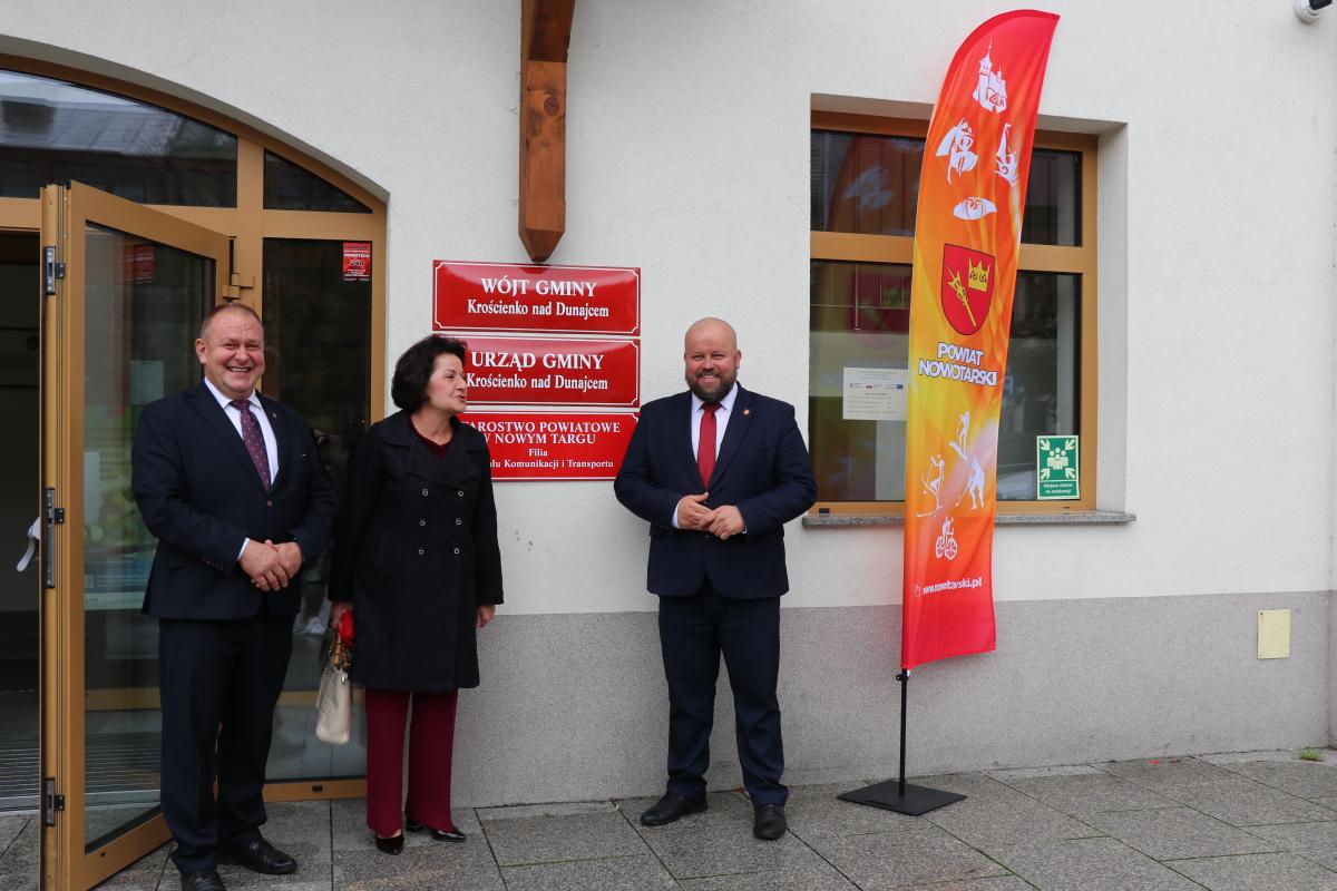 W dniu 1 października br. w samo południe uroczyście otwarto Filię Wydziału Komunikacji i Transportu Starostwa Powiatowego w Nowym Targu w Krościenku nad Dunajcem. W tym szczególnym wydarzeniu udział wzięli przedstawiciele samorządów oraz parlamentarzyści - Anna Paluch Poseł na Sejm RP oraz Jan Hamerski Senator RP.