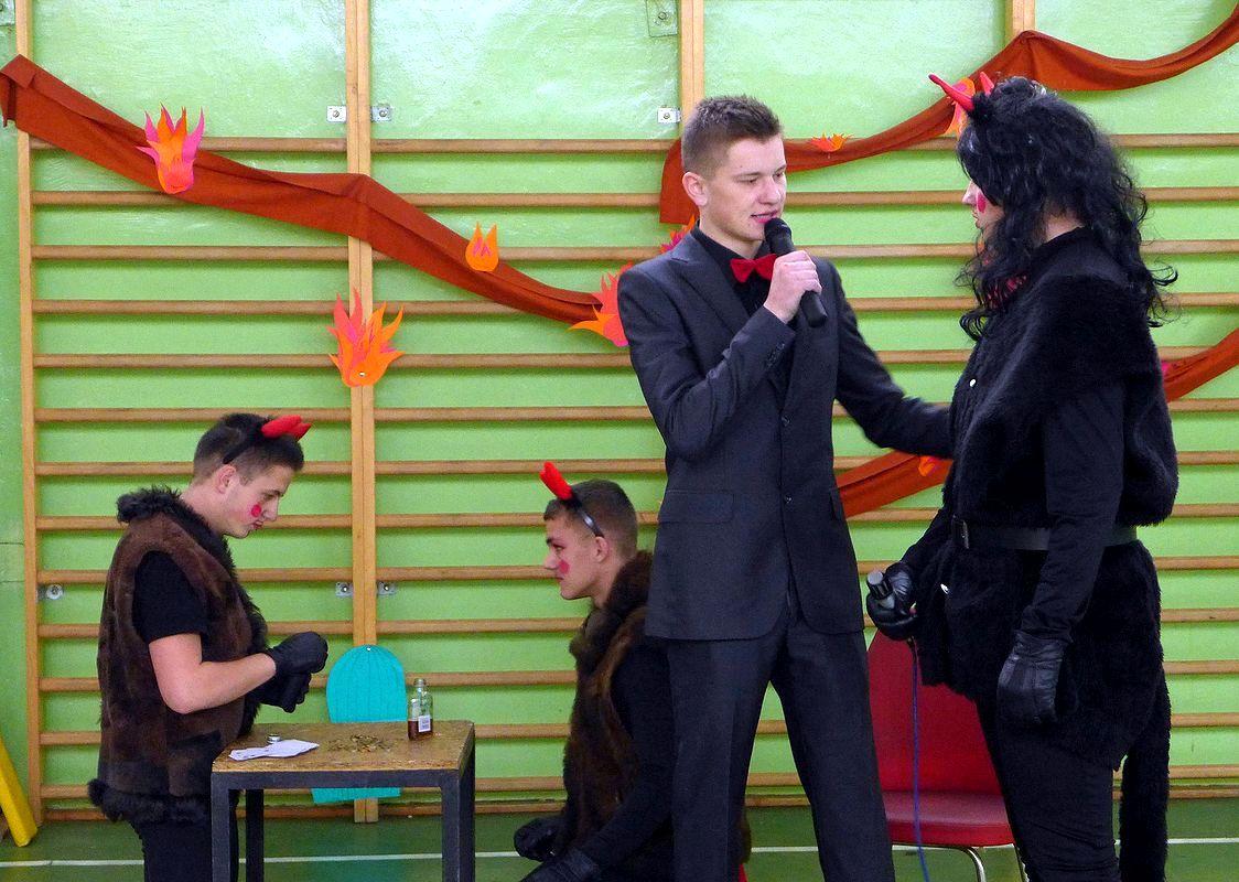 Przygotowanie spektaklu uczniom klas II – wojskowej i policyjnej – zajęło prawie dwa miesiące. Czynili to pod okiem i z pomocą swoich nauczycieli: polonistek Joanny Kapel i Alicji Bryniarskiej, katechety i opiekuna scholi Jakuba Mrugały. Postarali się o stroje, rekwizyty, scenografię, gitarowy akompaniament. A samorząd uczniowski – także o prezenty (włącznie z pierniczkami domowej produkcji), którymi okazały Mikołaj hojnie potem obdzielał z worka i dyrektorstwo, i nauczycieli, i uczniów – bo przecież wszyscy byli grzeczni…