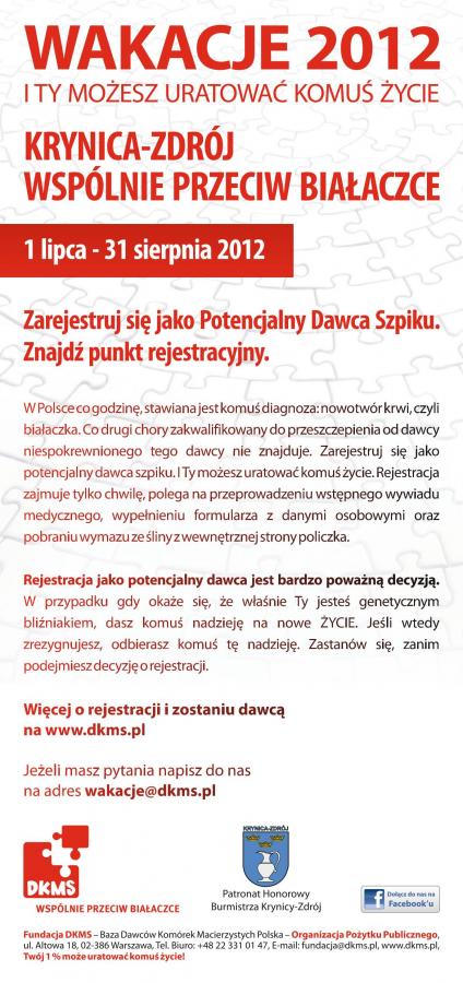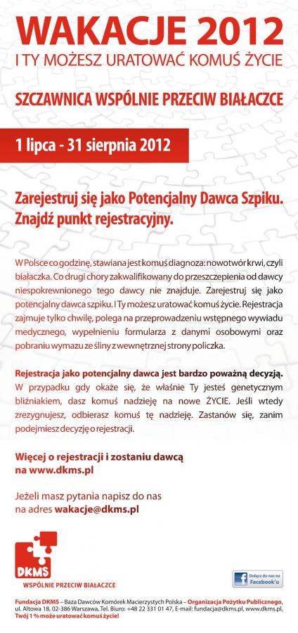 Białaczka nie ma urlopu, dlatego Fundacja DKMS Polska wraz z wieloma Hotelami, Ośrodkami Wypoczynkowymi, Schroniskami Górskimi postanowiła w okresie wakacyjnym rejestrować potencjalnych dawców, tam gdzie jest ich najwięcej – w górach.