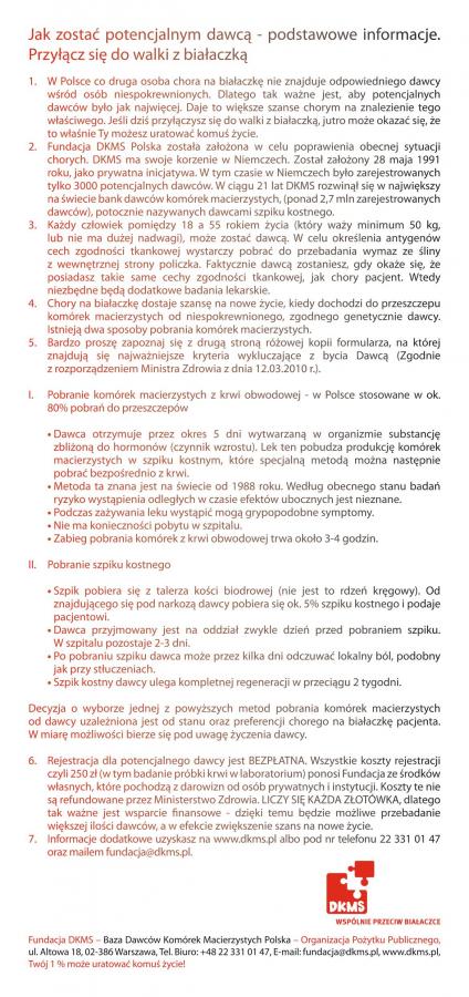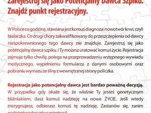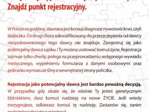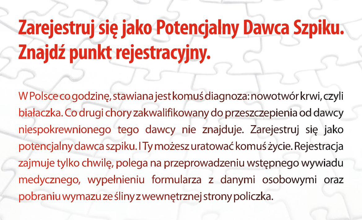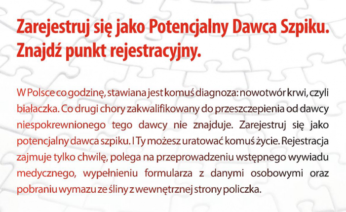 Niestety dla połowy pacjentów zakwalifikowanych do przeszczepienia od dawcy niespokrewnionego nie udaje się znaleźć bliźniaka genetycznego. W Polsce ciągle zarejestrowanych jest zbyt mało osób, które są gotowe oddać komórki macierzyste, bądź szpik do przeszczepienia.