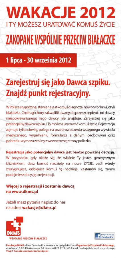 Co godzinę, w Polsce ktoś dowiaduje się, że ma białaczkę. Białaczka nie robi sobie przerwy wakacyjnej