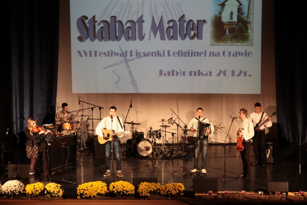 XVI Festiwal Piosenki Religijnej na Orawie „Stabat Mater” odbywał się od 26 do 28 października w Jabłonce. W ciągu dwóch pierwszych dni ponad 100 uczestników prezentowało swoje aranżacje w auli Zespołu Szkół im. Bohaterów Westerplatte. Występujących oceniało jury w składzie: Ksenia Miśkiewicz, Konrad Sowiński i Mirosław Smoleń.