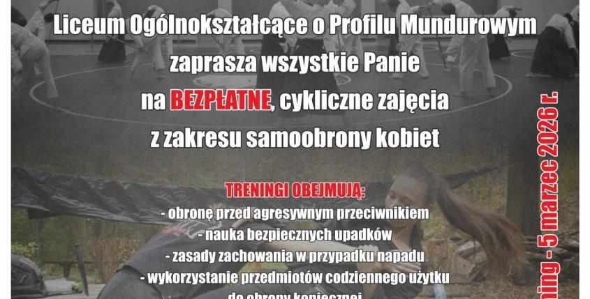 Prywatne LO o profilu mundurowym zaprasza wszystkie Panie na bezpłatne cykliczne zajęcia samoobrona kobiet na bazie sztuki walki jujutsu.