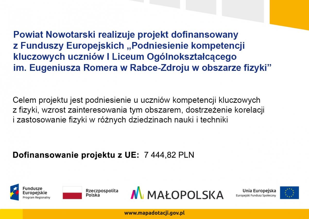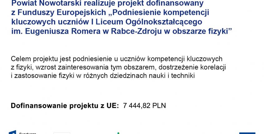 Podniesienie kompetencji kluczowych uczniów I Liceum Ogólnokształcącego im. Eugeniusza Romera w Rabce-Zdroju w obszarze fizyki.