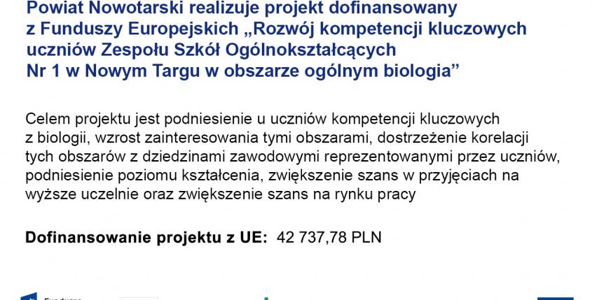 - w wyniku realizacji przedmiotowego projektu 16 uczniów Zespołu Szkół Ogólnokształcących Nr 1 w Nowym Targu podniesie wiedzę i umiejętności z obszaru biologia.